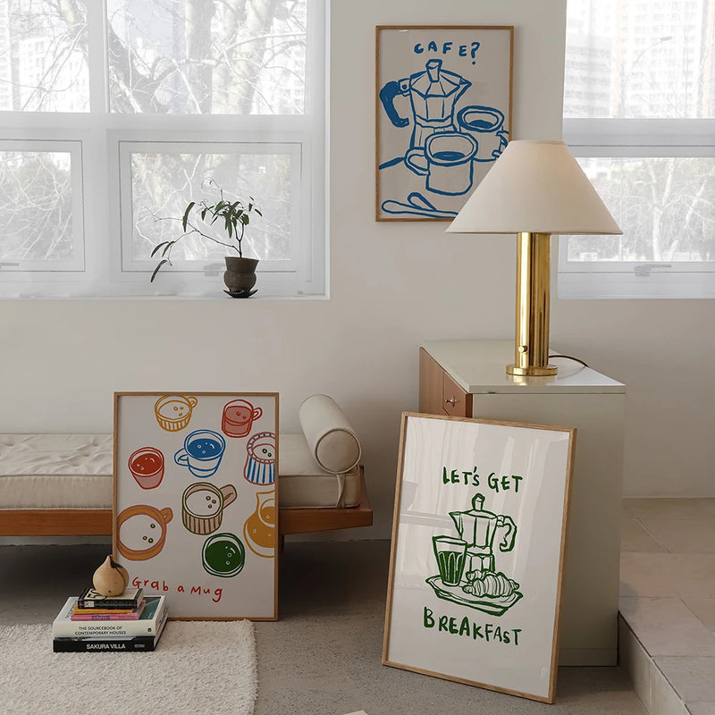 Les affiches d'art mural café incarnent le style scandinave, connu pour ses lignes épurées et son esthétique minimaliste. Avec leurs couleurs douces et leurs motifs délicats, elles s'intègrent parfaitement dans une cuisine moderne ou un café tendance. Imaginez une cuisine où chaque matin, vos murs vous accueillent avec des illustrations chaleureuses de tasses de café, de verres élégants et de citations inspirantes. Ces prints sont non seulement une véritable œuvre d'art, mais aussi un hommage à la convivialité autour d'un bon café.