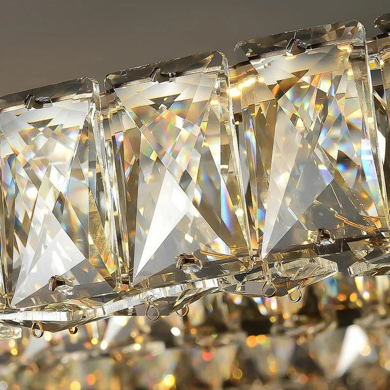 Le plafonnier 'Anneau de luxe' est un véritable bijou de design. Avec sa structure en acier inoxydable poli et plaqué, il apporte une touche de modernité à votre décoration intérieure. Sa finition dorée brillante ajoute une note de sophistication, tandis que les cristaux étincelants diffusent une lumière douce et apaisante.