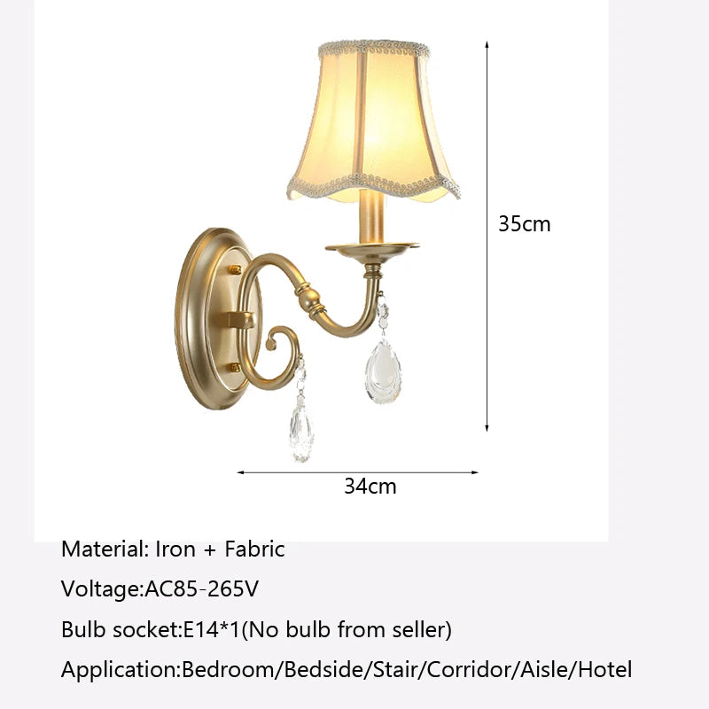 Nom du produit | Applique murale en cristal et tissu style rural américain pour hôtel |