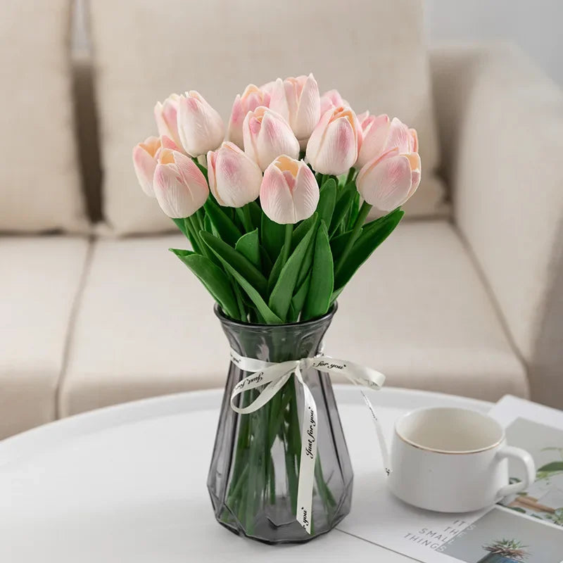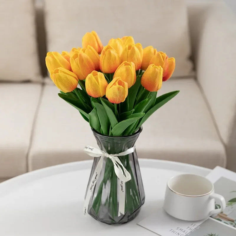 Notre bouquet de tulipes artificielles de luxe est non seulement parfait pour embellir votre intérieur, mais il est également une option incontournable pour les événements spéciaux tels que les mariages, les anniversaires ou les fêtes de fin d'année. Que vous prépariez un mariage romantique, une fête d’anniversaire mémorable ou un brunch entre amis, ce bouquet apportera une touche de sophistication à votre décoration. Grâce à leur style intemporel, ces tulipes s'intègrent harmonieusement à divers thèmes de décoration, du scandinave au moderne, en passant par le design industriel.