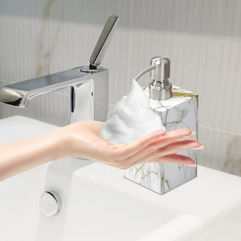 Fabriqué en résine durable, ce distributeur de lotion est conçu pour résister à l'usure quotidienne. La résine est non seulement robuste, mais elle est aussi facile à nettoyer, ce qui en fait un choix idéal pour la salle de bain ou la cuisine. Le fini lisse de la résine procure une sensation agréable au toucher et un aspect soigné qui s'intègre parfaitement dans différents styles de décoration.