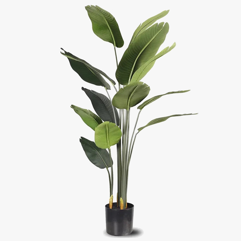 Avec son feuillage luxuriant et ses grandes feuilles rappelant celles des bananiers véritables, cet arbre artificiel s'intègre harmonieusement dans divers styles de décoration. Que votre intérieur soit de type industriel, scandinave, moderne ou même nordique, le grand bananier s’adapte à toutes les ambiances. Il se marie parfaitement avec des meubles en bois clair, des accents métalliques ou des textiles doux, ajoutant une touche de nature à votre décor.