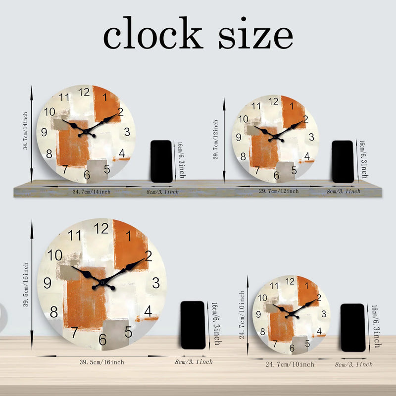 L'horloge murale présente un motif abstrait en nuances d'orange et de gris, créant une atmosphère chaleureuse et accueillante dans n'importe quelle pièce. Que ce soit dans votre salon, votre chambre à coucher ou même votre cuisine, cette horloge ajoute une touche de modernité et de sophistication. Son design circulaire et épuré s'intègre parfaitement dans des styles variés tels que le scandinave, l'industriel, ou le contemporain.