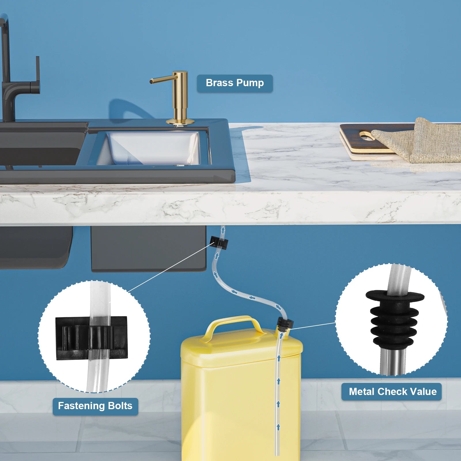 Le kit comprend également une valve de retenue en laiton, assurant une distribution fluide et sans gouttes de savon. Cela signifie moins de désordre et plus de propreté dans vos espaces de lavage. De plus, le système de distribution est facile à recharger, ce qui fait de ce distributeur un choix pratique pour votre routine quotidienne.
