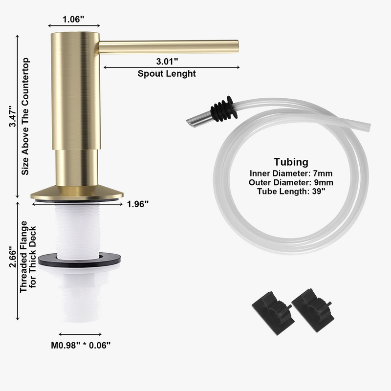 Ce kit est équipé d'un tube d'extension de 100 cm, offrant une grande flexibilité pour s'adapter à différents espaces et configurations. Que vous souhaitiez l'installer sous un évier, à proximité d'un lavabo, ou même dans une salle de lavage, ce distributeur se plie à tous vos besoins. Grâce à son design intelligent, il est compatible avec des trous de taille variant entre 2,48 cm et 4,97 cm, ce qui vous permet de l'intégrer facilement dans vos installations existantes.