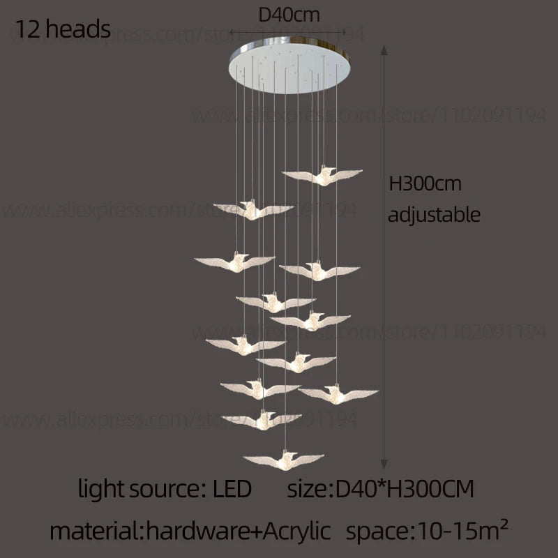 Nom du produit Suspension led décorative en forme d'oiseau pour loft et villa
