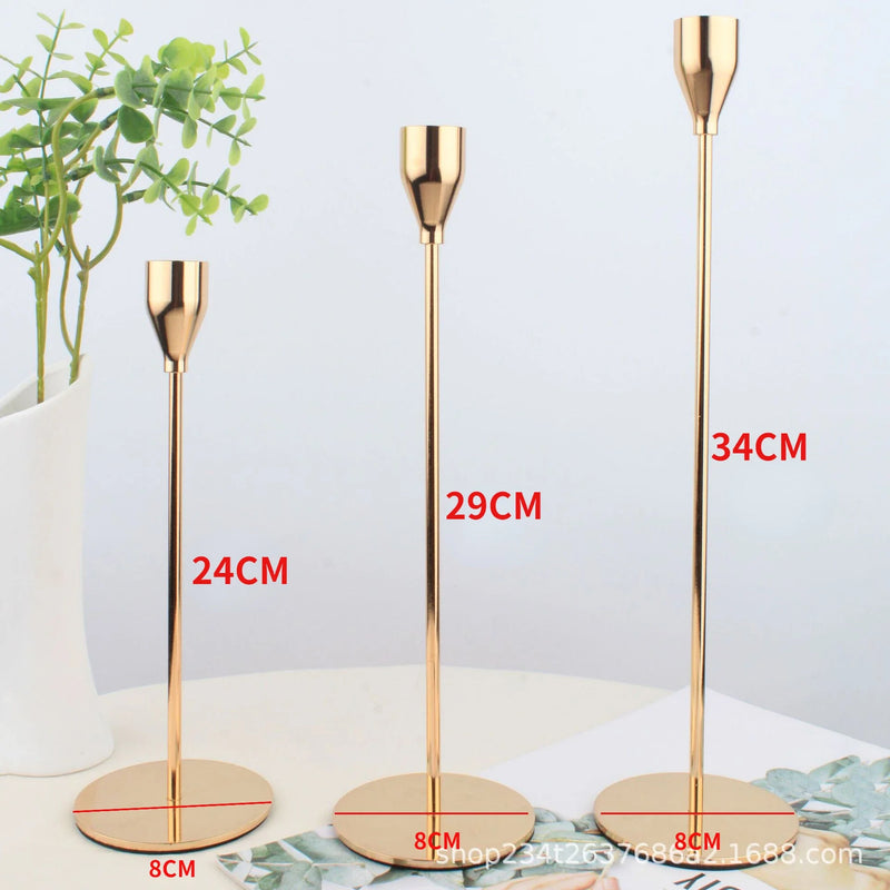 Fabriqués en métal de haute qualité, ces bougeoirs se démarquent par leur finition dorée qui apporte une touche de luxe à votre décoration. Leur design épuré et contemporain s'intègre parfaitement dans des styles variés, qu'ils soient industriels, scandinaves ou modernes. Leur allure raffinée en fait un choix versatile, capable de s'adapter à un mariage élégant ou à une fête décontractée.