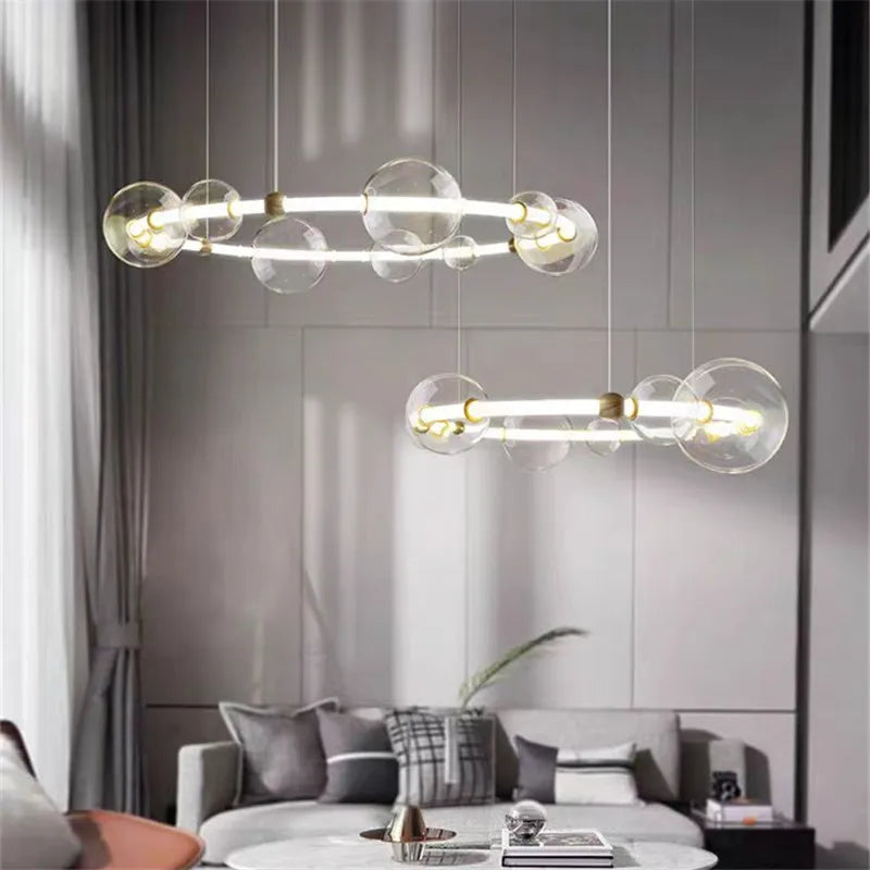 Lustre de luxe à bulles longue bande éclairage led en verre transpa...