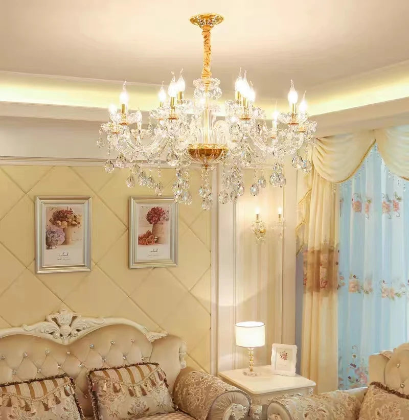 Lustre en cristal transparent européen pour un éclairage luxueux