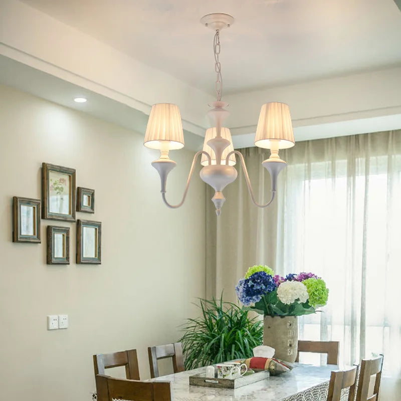 Lustre moderne à trois ou six lumières en métal avec abat-jour tissu