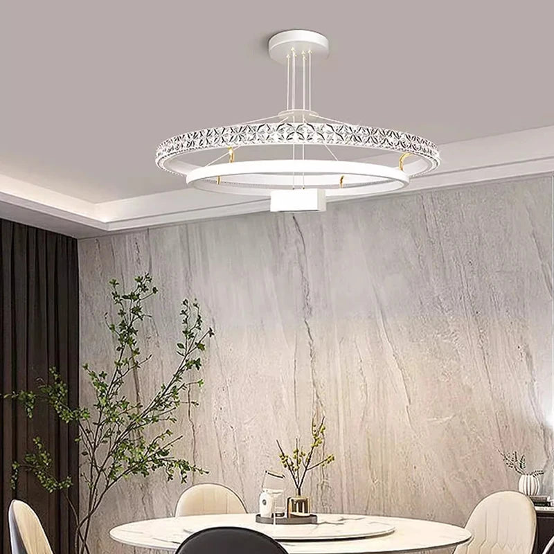 Le lustre moderne de luxe LED est fabriqué à partir d'un alliage de haute qualité, ce qui lui confère une robustesse et une durabilité exceptionnelles. Avec une finition soignée, ce lustre combine à la perfection élégance et modernité. Il est doté d'une suspension à cordon, qui lui donne un aspect flottant et ajoute une dimension supplémentaire à son design.