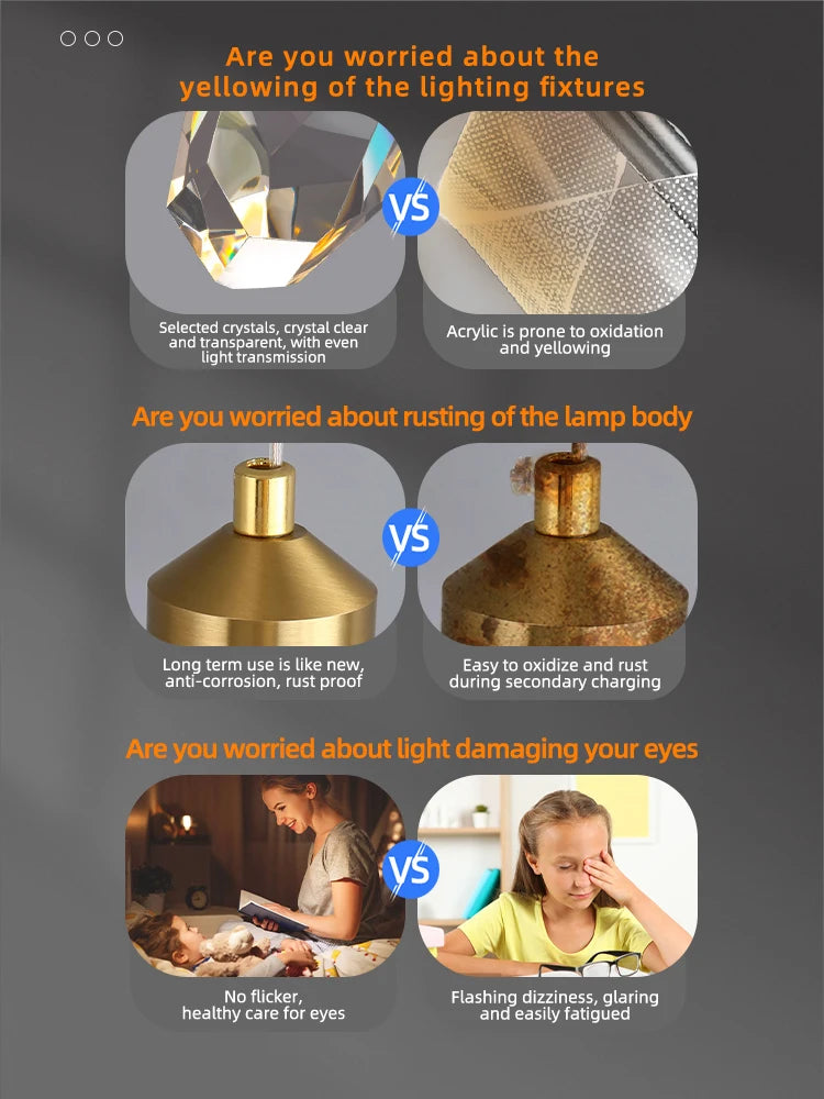 Offrez-vous ce bijou de luminaires et transformez votre maison en un sanctuaire de style et de confort. Que vous soyez un particulier désireux de sublimer votre intérieur ou un professionnel à la recherche d'un éclairage de prestige pour vos projets, ce lustre saura répondre à toutes vos attentes. N'attendez plus pour faire briller votre espace, commandez votre lustre moderne haut en cristal dès aujourd'hui et laissez la lumière révéler la beauté de votre intérieur.