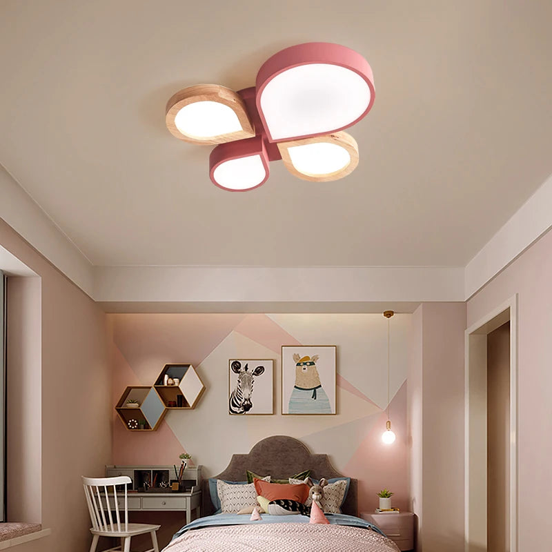 Lustre nordique romantique en bois art créatif led moderne