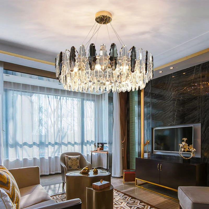 • Salle à manger : Pour des dîners élégants et conviviaux, le lustre apporte une touche de luxe au-dessus de la table.