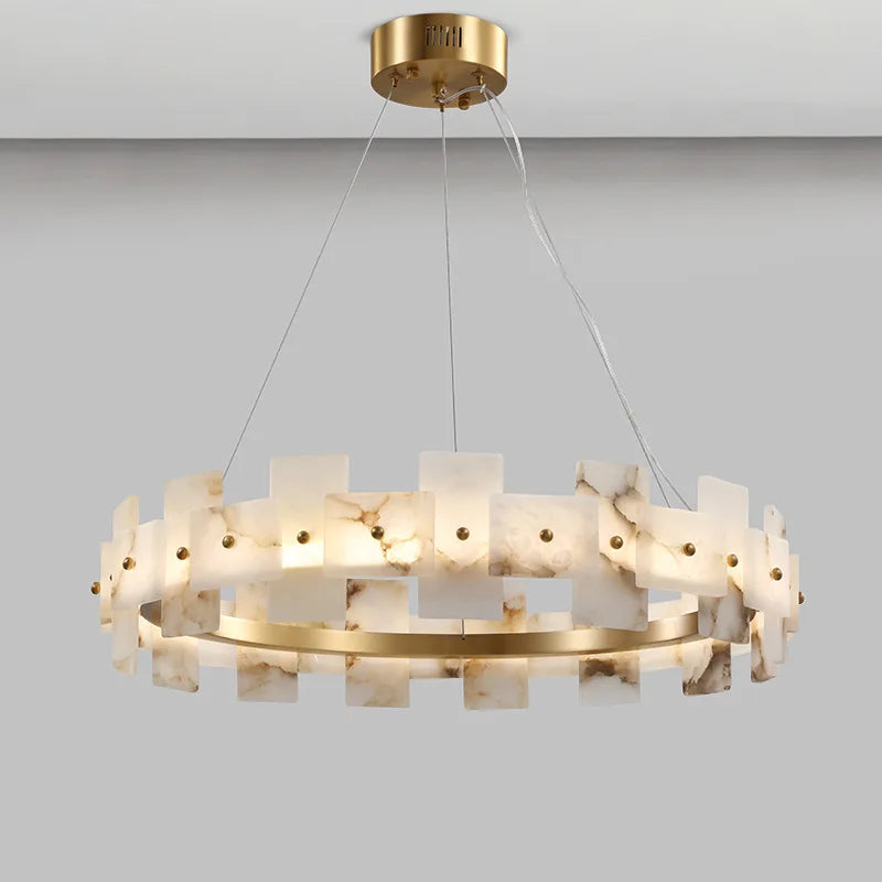 Lustre rond en marbre naturel avec anneau en cuivre réglable