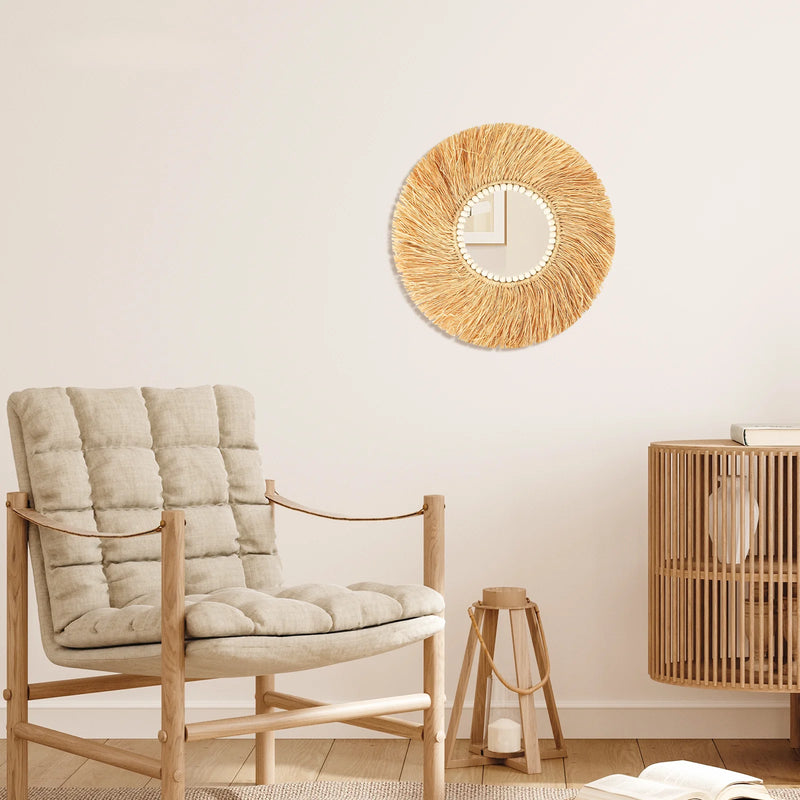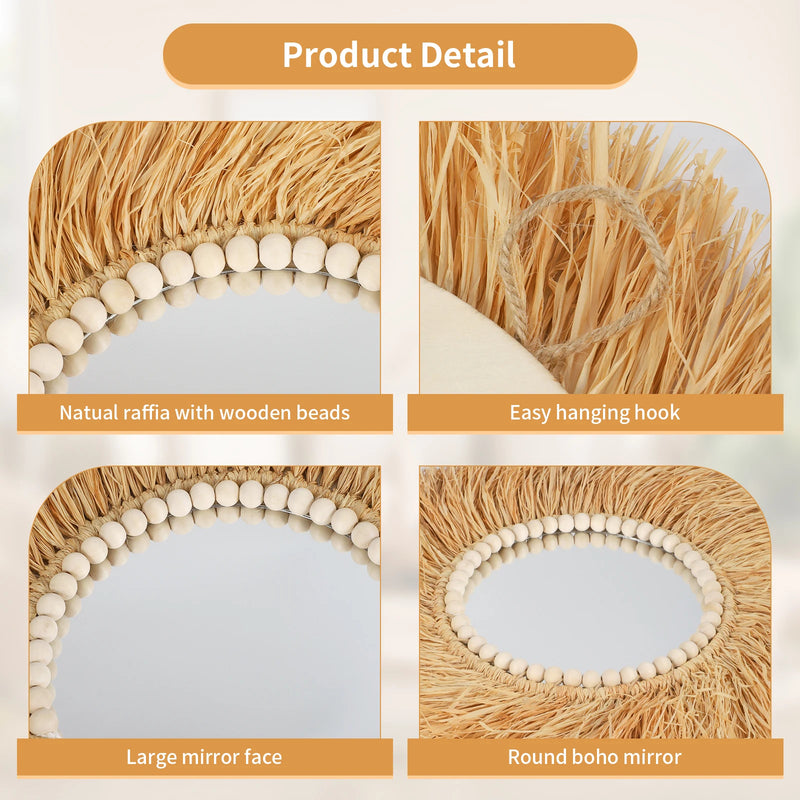 | Nom du produit | Miroir décoratif en perles de bois de raphia fait main style bohème |