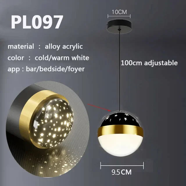 Nordique luxe cristal suspension chambre salon chevet lustre lampe ...