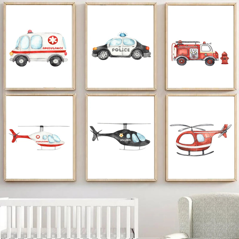 | Nom du produit | Peinture murale camion de pompiers ambulance et avion pour enfants |