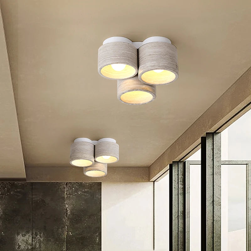 Nom du produit | Plafonnier led moderne en pierre de grain de bois à 3 têtes wabi sabi |
