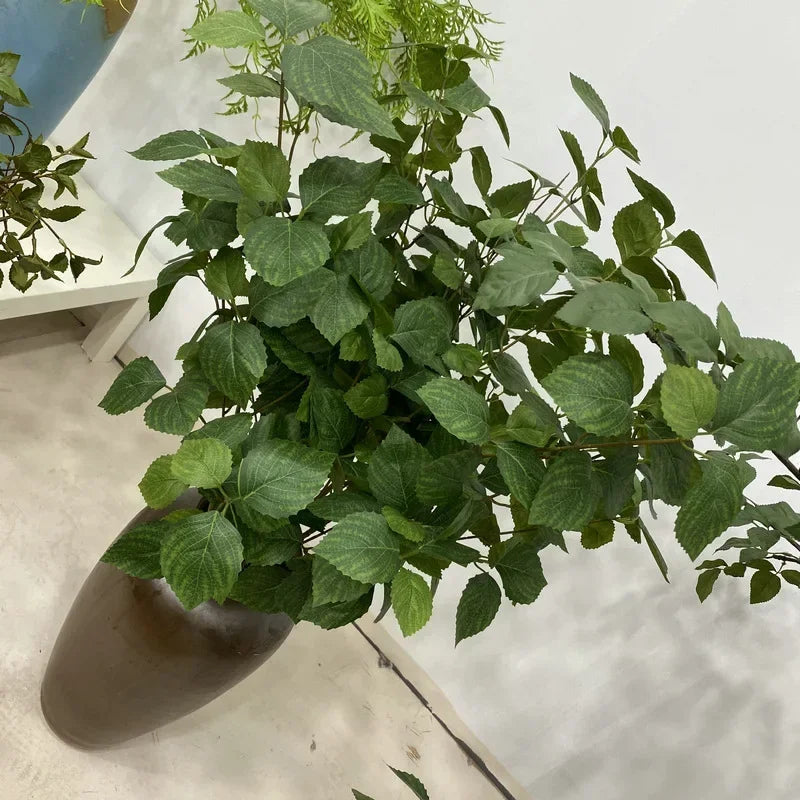 Avec ses feuilles délicates et ses tiges en plastique, cette plante artificielle se fond harmonieusement dans tout type d’environnement. Mesurant 55 cm de hauteur pour le petit bouquet et jusqu'à 103 cm pour les longues feuilles, elle s’adapte parfaitement à vos tables de chevet, bureaux ou même comme pièce maîtresse dans votre salon. Imaginez-la trônant élégamment sur une table basse en bois dans un style scandinave, ou apportant une touche de fraîcheur à votre décoration industrielle.