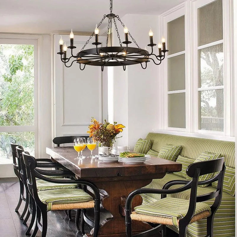 Retro Iron Art Chandelier with Creative Personality, Nostalgic Industrial Style Candle Chandelier, Living Room Lighting Fixture