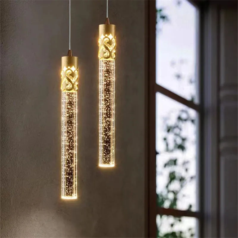 Transformez votre intérieur en un véritable écrin de lumière avec notre suspension en cristal design, un choix idéal pour ceux qui souhaitent allier esthétisme et fonctionnalité. Cette pièce maîtresse en éclairage ne se contente pas d'illuminer vos espaces, elle incarne également l'élégance et le raffinement grâce à son design Art Déco distinctif. Avec son tube en cristal poli et ses finitions chromées, cette suspension donne une touche de luxe à tout type de décoration intérieure.
