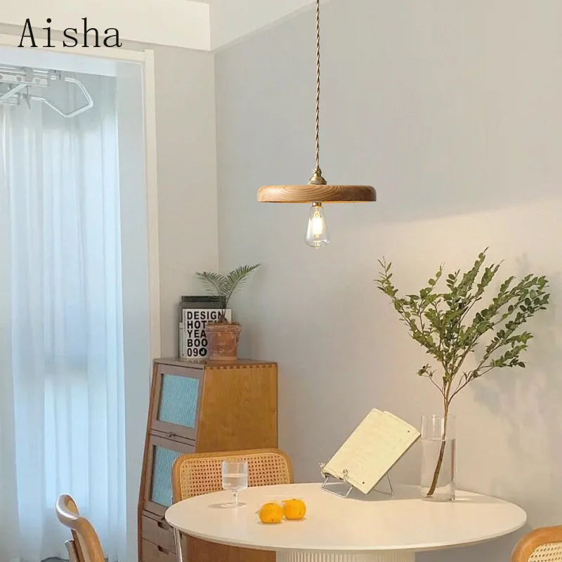 Suspension vintage en bois massif pour un éclairage chaleureux inté...